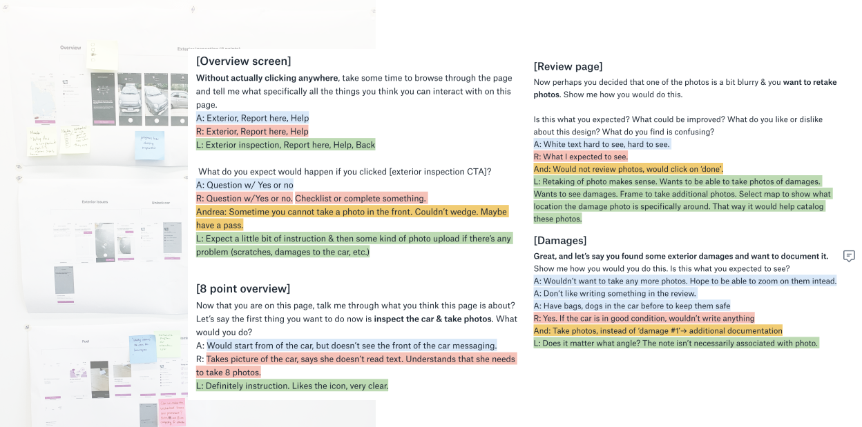 Interviewed internal teams across the organization such as claims, trust & safety, customer happiness. Talked with renters & owners on the platform to understand pain points from their perspective.
